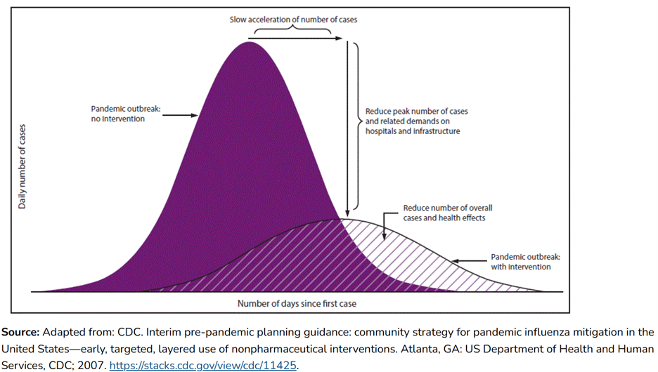 Myth: Efforts to “flatten the curve” failed during the pandemic because the SARS-CoV-2 virus could not be completely eliminated. Fact: “Flattening the curve” was a public health strategy that was publicized to help prevent the COVID-19 pandemic from overwhelming the U.S. healthcare system: