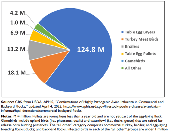 Myth: Egg prices soared in 2025 due to some corporate conspiracy fueled by greed, inflation, or artificially created shortages. Fact: Egg prices reached new highs in 2025 because of the ongoing outbreak of highly pathogenic avian influenza (HPAI) which began in 2022 and has resulted in the culling of over 173 million birds between February 2022 and May 2025 (USDA - HPAI Confirmations). Prior to this, there was a major outbreak in 2014-2015 which resulted in the culling of over 50 million birds over a 7 month period (USDA - 2014-2015 HPAI Final Report). Egg prices increased more than meat prices because more egg layers were affected overall and because meat birds tend to be younger than egg layers. It takes longer to re-establish a flock of layers after depopulation (~5 months) than meat birds (~6-7 weeks), and older birds tend to be more susceptible to the virus (Congress - HPAI Outbreak 2022-Present). Like SARS-CoV-2, HPAI (H5N1 clade 2.3.4.4b) can infect a wide array of mammals including dairy cattle, domestic cats, and even marine mammals such as seals and dolphins and requires a One Health approach for effective outbreak response.